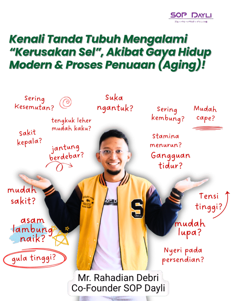 SOP Dayli akan membantu memperbaiki dan menyehatkan sel – sel pada organ tubuh. baik itu jantung, lambung, ginjal, liver, pankreas, pembuluh darah, dsb.